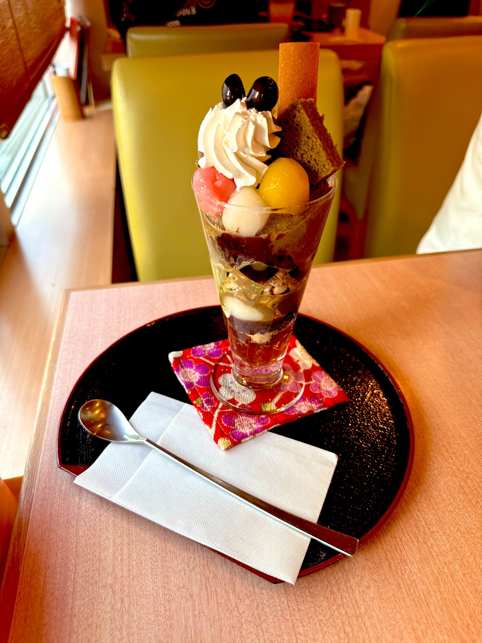 京都でほうじ茶とわらび餅のパフェを食べるっていいよねっ🥹